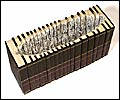 Brian Dettmer's carved books are intricate creations, which seek both to seduce the eye and provoke the mind. Through the cut open cover of a book the viewer sees layers of specifically selected text and illustration carved from the pages of the book. Through the gaps in an architectural drawing or perhaps the chambers of the human heart, one can see a word peeking through, perhaps a clue to the larger meanings of the piece. These pieces seek to bridge the gap between a medium's form and its message. Dettmer manages to use the contrasting layers of image and text to explore the conveyance of information, as well as being able to get the viewer to examine what that can mean.