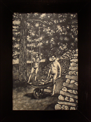 Picture an Arcadian family sitting with their normal wholesome attitudes at a picnic table as pastoral songs play on the radio. Primitive herdsmen and farmers unspoiled by civilization play volleyball as their wives cheer them on with bucolic chants (a classic motif of art, of course). Below the flapping leaves, on sun-dappled lawns with the sounds of a lute and a trickling stream, monogamous, god-fearing nymphs and satyrs and other mostly human creatures apply suntan lotion in one timeless scene. Nacktes Familienleben. Unsophisticated yet self-satisfied, they plow their idyllic paradise and the earth rewards every effort.